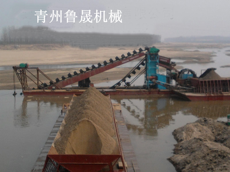 挖沙船,即采掘沙石、沙礦的船舶,一般為電動(dòng)遷移式或柴油機(jī)械動(dòng)力式。船體采用拼裝式箱型結(jié)構(gòu)。配有挖掘裝置、篩選裝置、提升裝置、傳送裝置等。通過電機(jī)驅(qū)動(dòng)挖斗上料,石塊通過篩選傳由輸送帶傳出,沙子由輸送帶或沙泵傳到地點(diǎn)。